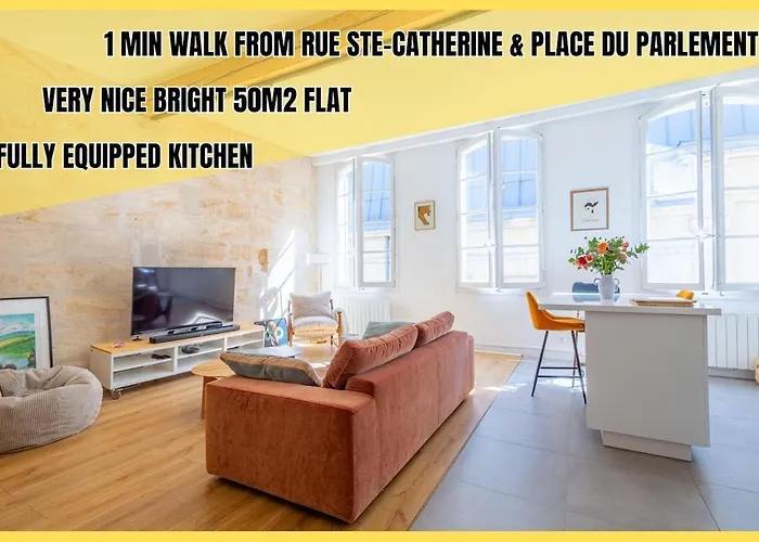 Το διαμέρισμα Designer & Bright Apartment On Rue Sainte-Catherine είναι μόλις 1 χλμ. Μακριά από Βασιλική εκκλησία St. Seurin. Αυτό το κατάλυμα περιλαμβάνει 1 υπνοδωμάτια, 1 μπάνια και πλήρως εξοπλισμένη κουζίνα.